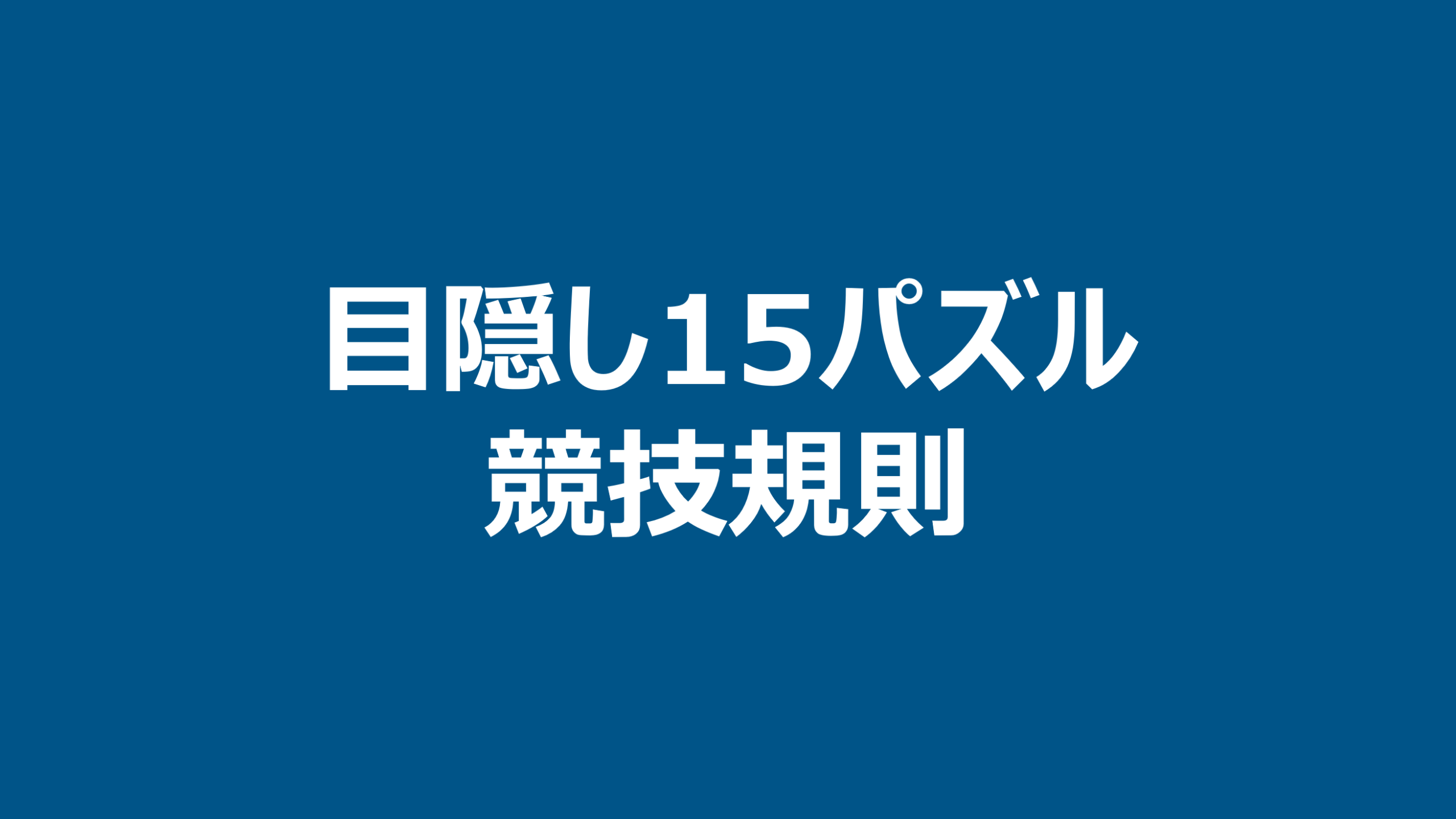 目隠し15パズル競技規則 2026.02.22 目次 ルール上の注意点完成状態について ルール上の注意点 基本的にスピードキュービング競技のルール(WCA規則)に従います。 スクランブルはCStimeを使用します。 現時点で15パズルの種類に制限はありません。 完成状態について 方向が異常状態のコマ及びひっくり返った異常状態のコマが二つ以上の場合はDNF 【OK】正しい完成状態 【OK】方向が異常状態のコマが一つ 【OK】ひっくり返った異常状態のコマが一つ 【OK】「6」と「9」が判別できなくてもOKです。 【DNF】方向が異常状態のコマが二つ 【DNF】方向が異常状態のコマが一つとひっくり返った異常状態のコマが一つ コマは正しい位置に収まっていなければならない。「収まる」とはコマの表面の50%以上があるべき位置を占めている状態をいう。収まっていなければDNF。 【OK】15のコマがズレているが表面があるべき位置の50%以上を占めている 【DNF】15のコマがあるべき位置の50%を占めていない コマの底面が土台に正しく設置しなければならない。正しく設置していなければDNF。 【DNF】12のコマが隣のコマの上に載っている