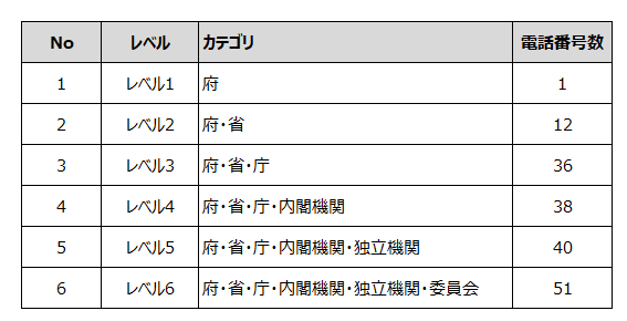 • 将来の官公庁の増減などにより代表電話番号に変化が現れるかもしれませんがご容赦ください。
